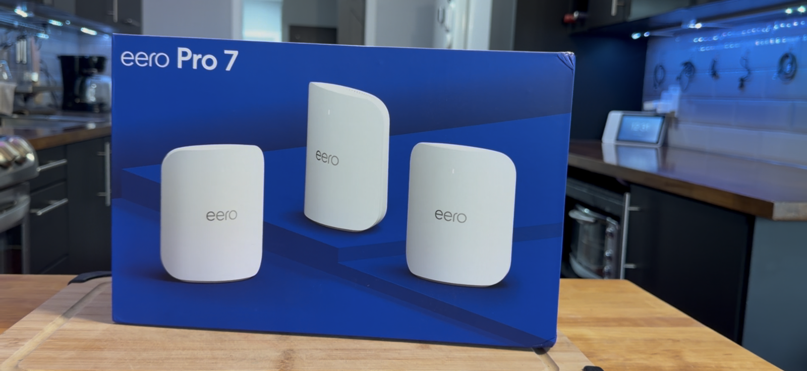 In my home, I'm upgrading my 2017 NETGEAR Orbi mesh system to the 2025 Eero Pro 7. This is a Wi-Fi 7 system with 3 satellites that you place in different areas. The thing to remember is there's a goldilocks zone with these Eero satellites. You don't want them too close, but also not too far. Thankfully, the eero app tells you if you placed the satellite in a good location or not. This makes it super easy and fun to build your home Wi-Fi network.